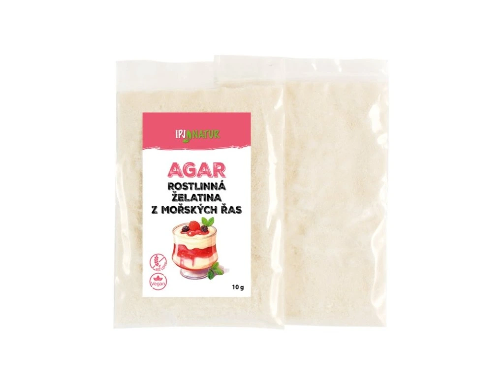 Agar je rostlinná želatina z mořských řas, která dokáže želírovat při pokojové teplotě. Je přírodním zahušťovadlem, velmi oblíbeným a používaným v asijské kuchyni. Obsahuje řadu vitamínů a minerálních látek jako je například vápník, hořčík a jód, dále obsahuje kyselinu listovou.