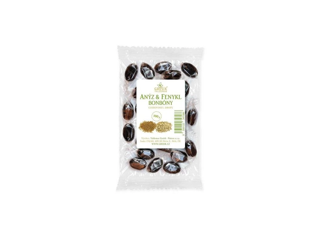 Složení: cukr, glukózový sirup, kandysový sirup, karamelový sirup, lekořicový extrakt (3 %), přírodní aroma (anýzová silice 0,1 %, fenyklová silice 0,1 %)