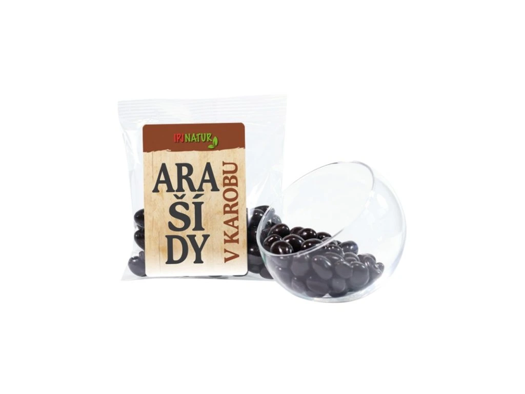 Arašídy v karobu jsou kombinací lahodných burských oříšků a karobové polevy, jsou výbornou variantou originálního rychlého občerstvení, vhodnou alternativou pro rychlou svačinku, pro pohoštění, při chuti na něco zajímavého nebo ve studené kuchyni pro přípravu a dekoraci dezertů.
