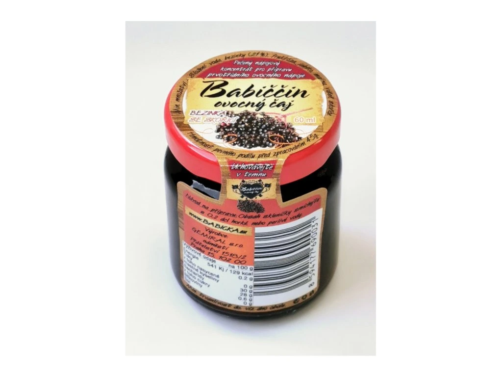 Babiččin ovocný čaj je vynikající nápojový koncentrát s kousky ovoce bez jakýchkoliv konzervačních látek či barviv. Je slazen pouze fruktozou a proto je vhodný pro malé děti i pro diabetiky.