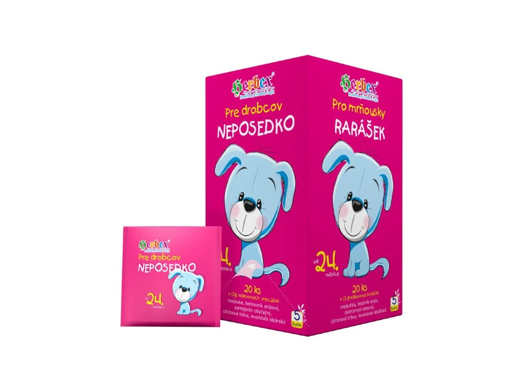 Porcovaný čaj pro mrňousky od 24. měsíce. Dobromysl, bedrník anýz a citrónová tráva mají uklidňující účinek.