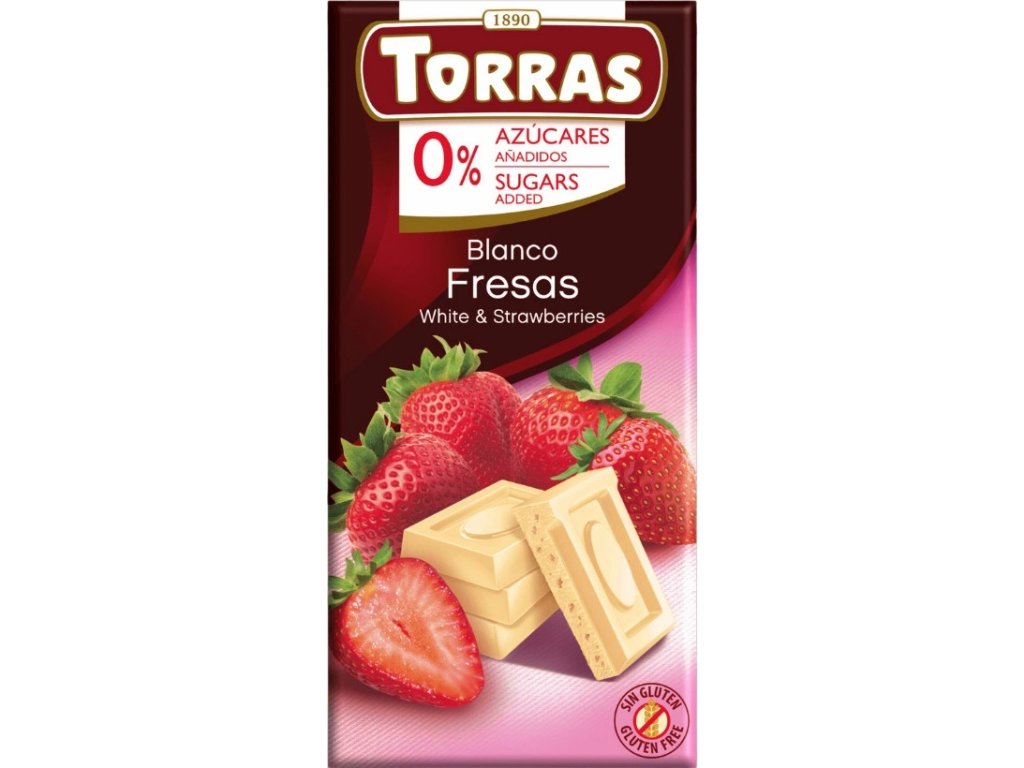 Čokoláda bílá jahodová DIA 75g Torras