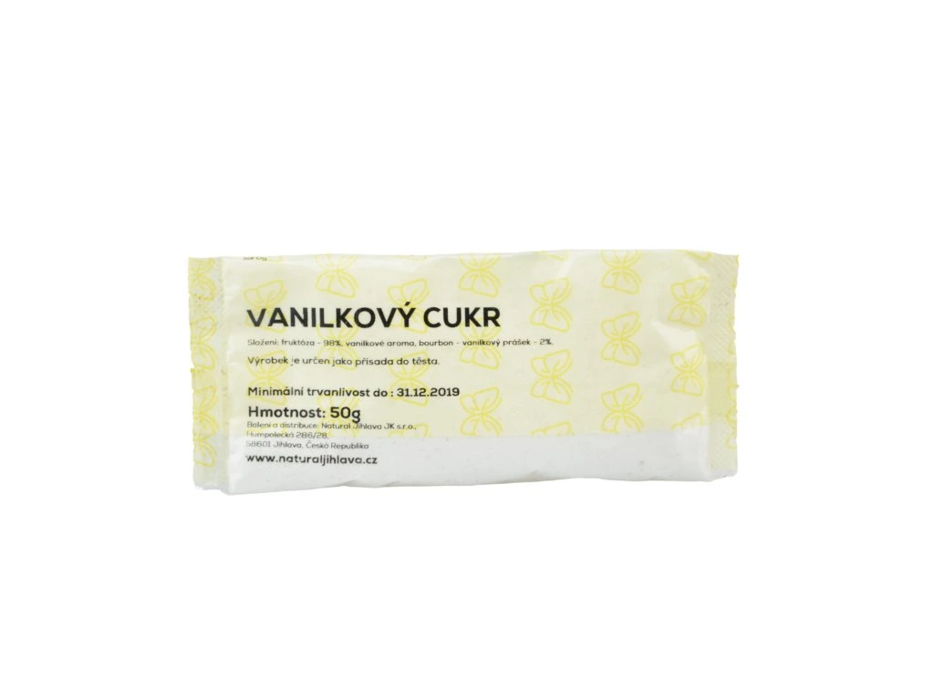 Fruktóza 98%, vanilkové aroma, Bourbon - vanilkový prášek- 2%.
