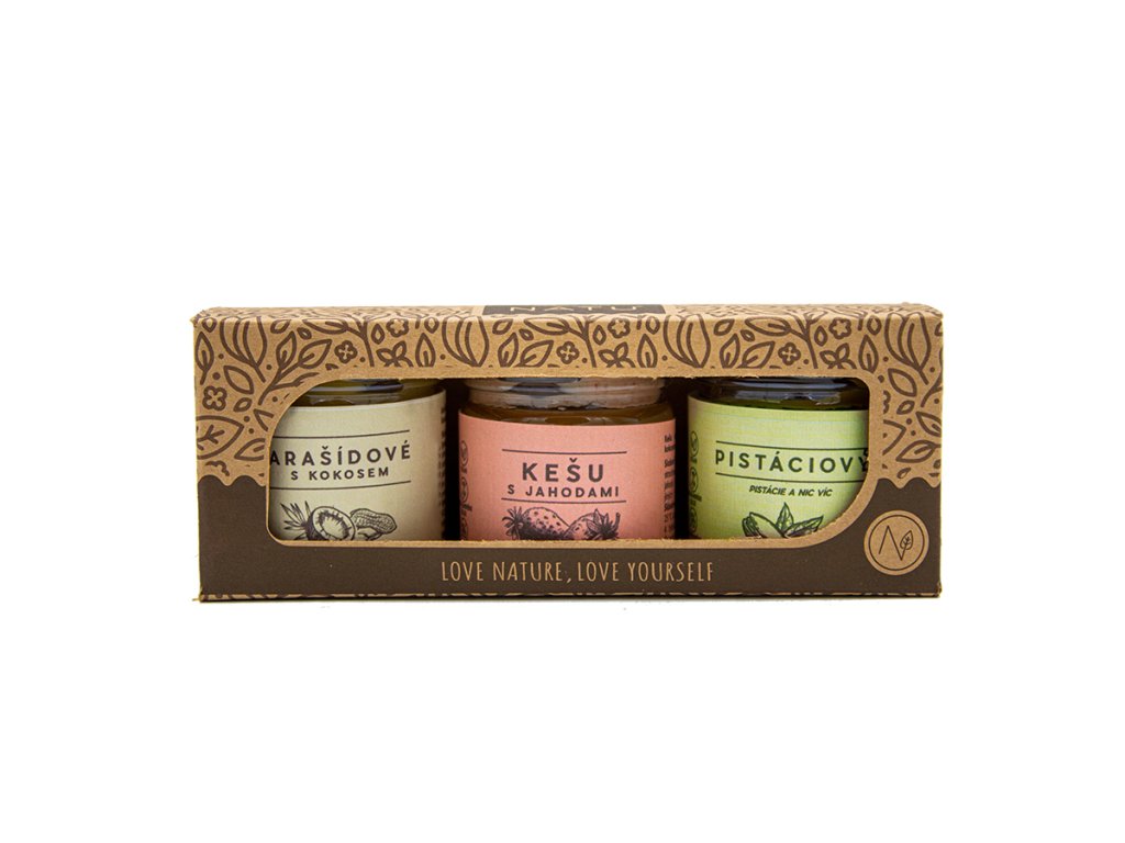 Každý krém je vyroben z kvalitních surovin se 100% přírodním složením, bez palmového oleje a konzervantů. Díky mini balení můžete snadno ochutnat, porovnat a vybrat si své oblíbené máslo – ať už pro sebe, nebo jako malý dárkový box pro gurmány.