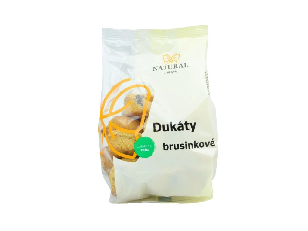 OVESNÉ vločky s klíčky - 70%, SÓJOVÁ mouka, sušené brusinky - 15% (brusinky, cukr, brusinkový koncentrát, slunečnicový olej, regulátor kyselosti: kyselina citrónová), rýžový sirup - 8%, neztužený kokosový tuk.