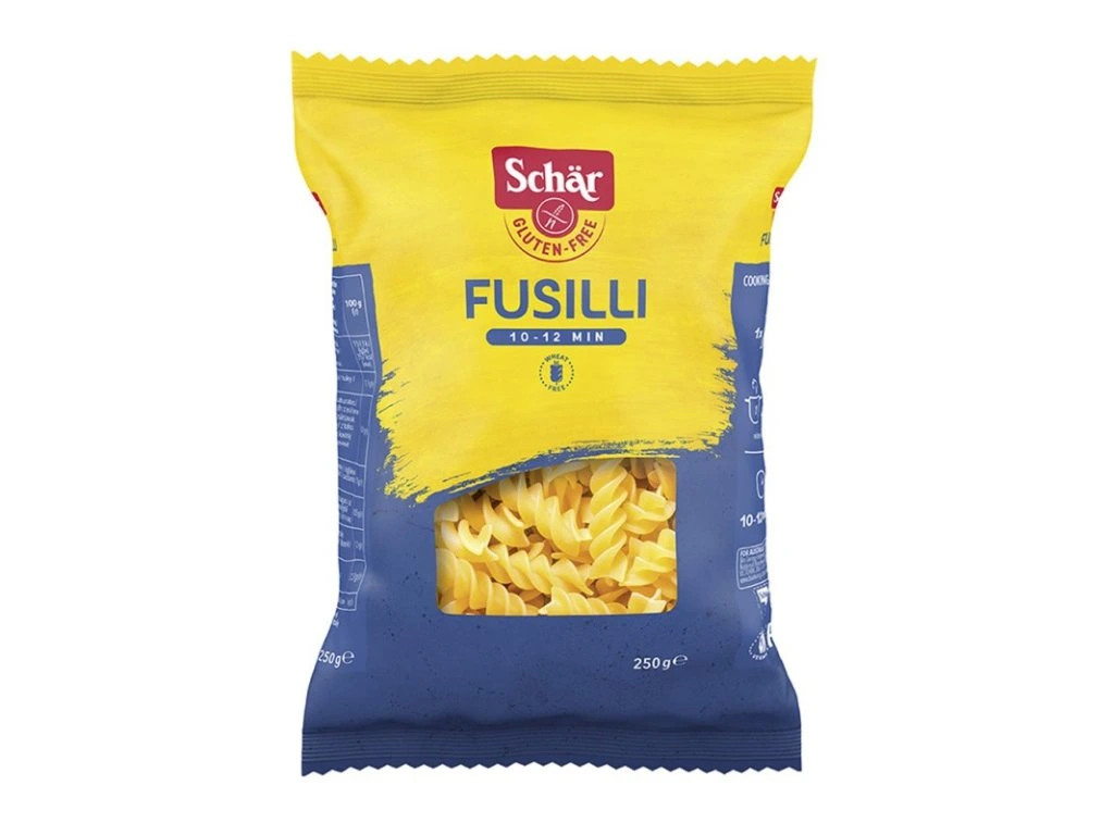 Nabídka bezlepkových těstovin společnosti Schär obsahuje vřetena Fusilli , zavářkové mušle Conchigliette , zavářkové nudle Capelli d´Angelo , noky Gnocchi , tradiční Penne , Lasagně a špagety.