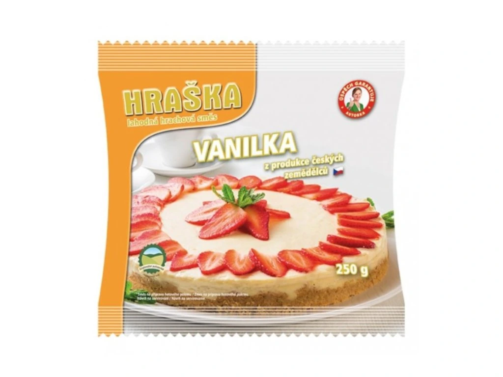 Hraška Vanilka je hrachová směs ochucená přírodní vanilkou. Přirozeně neobsahuje lepek, cholesterol, glutaman sodný, konzervanty ani barviva. Zlepšuje soudržnost těst a usnadňuje jejich zpracovávání. Díky těmto vlastnostem Hraška Vanilka umožňuje snížení nebo úplné vynechání vajec v těstech, především při použití celozrnné nebo bezlepkové mouky.