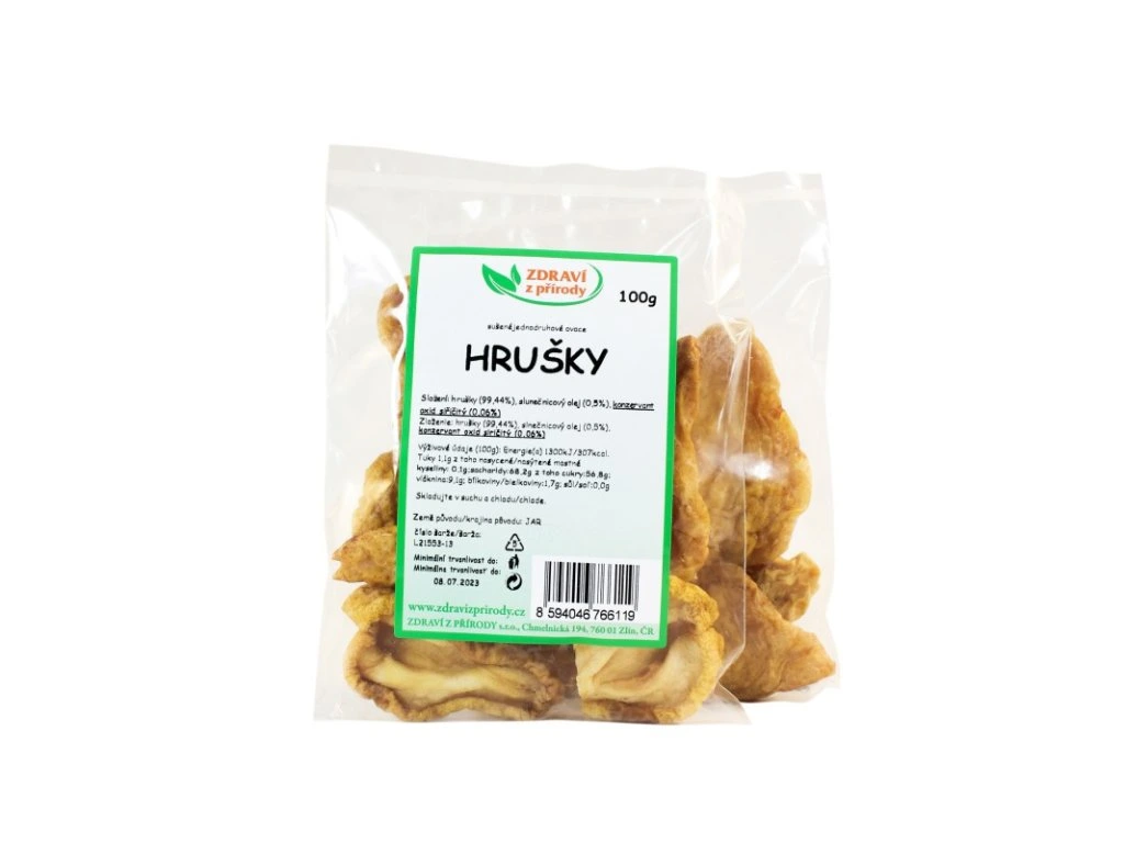Hrušky jsou sušené neslazené plátky oblíbeného ovoce, určené ke konzumaci buď samotné nebo se přidávají do cereálních směsí, kaší, jogurtu a dalších pokrmů. Jsou výbornou variantou originálního rychlého občerstvení, při chuti na něco sladkého nebo jako sladká tečka po jídle. S plátky sušených hrušek lze experimentovat při výrobě a dekoraci dezertů, ovocných salátů a sladkých pokrmů.
