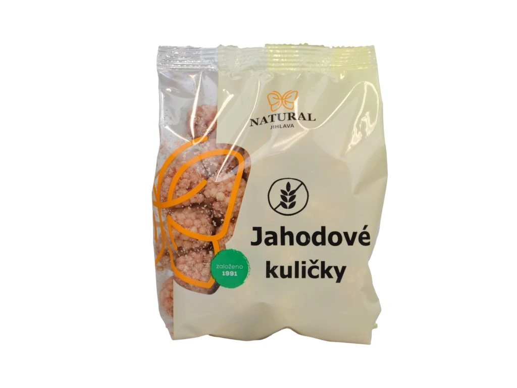 Křupavá bezlepková pochoutka slazená agáve sirupem s příchutí jahod.