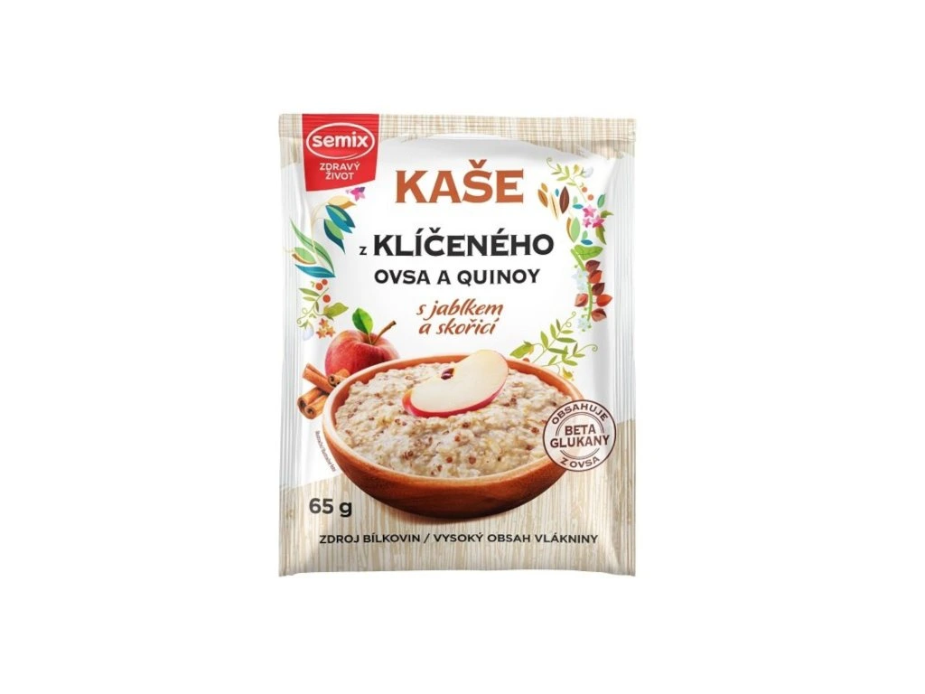 Kaše z klíčeného ovsa a quinoy s jablkem a skořicí 65g SEMIX