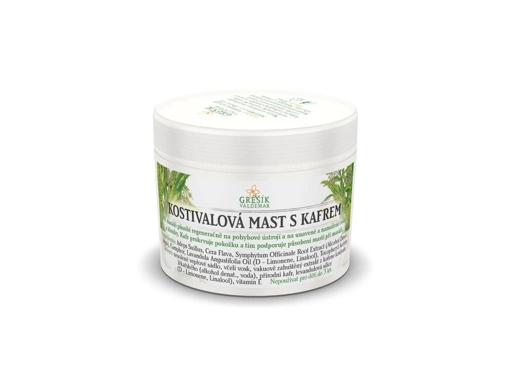 Složení: nesolené vepřové sádlo, včelí vosk, vakuově zahuštěný extrakt z kořene kostivalu lékařského (alkohol denat., voda), přírodní kafr, levandulová silice (D - Limonene, Linalool), vitamín E