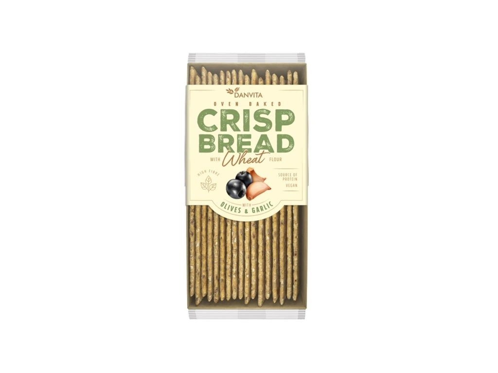 Pšeničné krekry s olivami a česnekem jsou křehké obilné plátky s olivami a česnekem a vysokým obsahem vlákniny. Jedná se o pekařský výrobek vysoké kvality určené ke konzumaci pro rychlé a zdravé občerstvení nejen na doma, ale také do práce, do školy nebo při cestování. Krekry s olivami a čenekem jsou pečené v troubě a jsou zdrojem vlákniny.