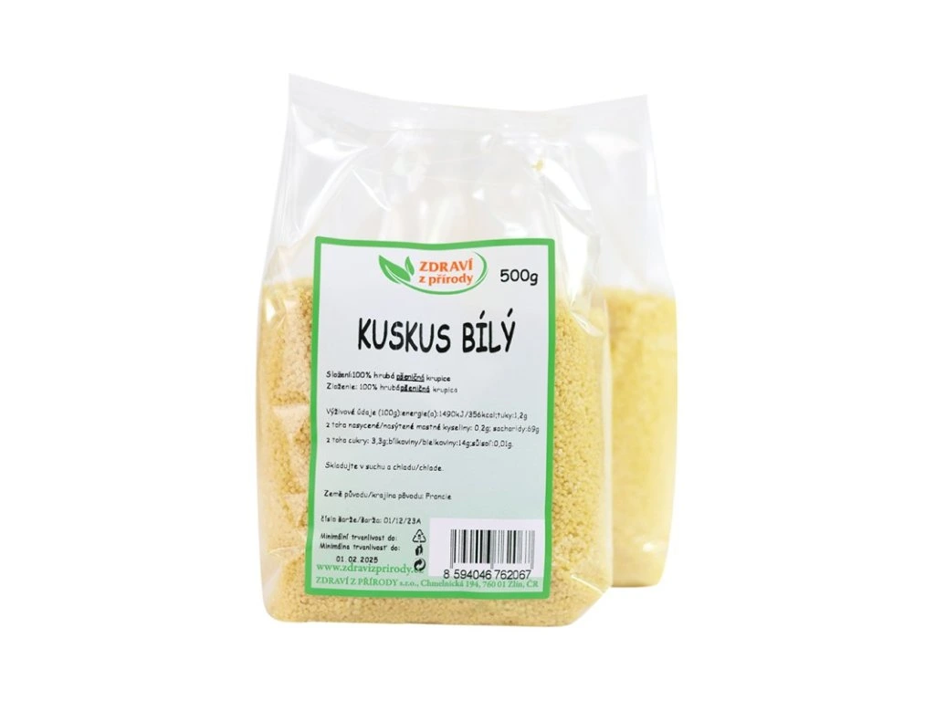 Kuskus bílý je pšeničná krupice určená k rychlé přípravě výživných jídel všeho druhu. Lze ji použít při přípravě jak slaných tak sladkých pokrmů nebo salátů. Kuskus lze konzumovat jak teplý, tak studený.