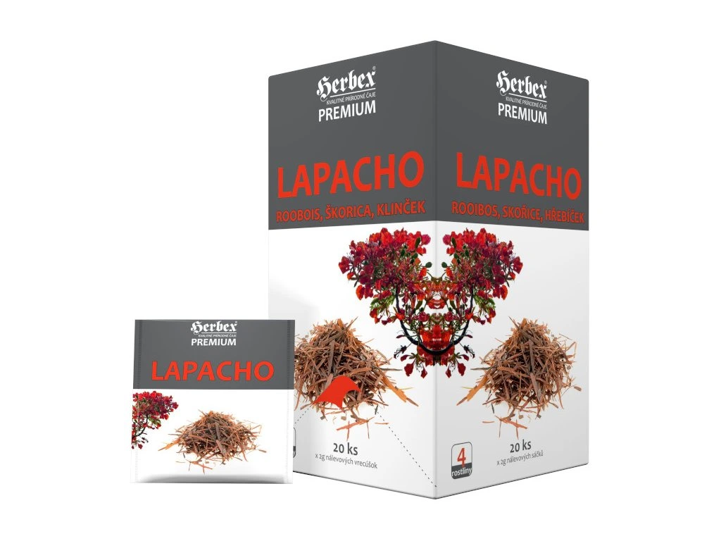 Nazývá se též nápoj Inků. Červené Lapacho je vnitřní kůra jihoamerického stromu Lapacho. Lapacho je silný antioxidant a podporuje obranyschopnost organizmu. Přispíva k relaxaci, duševní a fyzické pohodě.