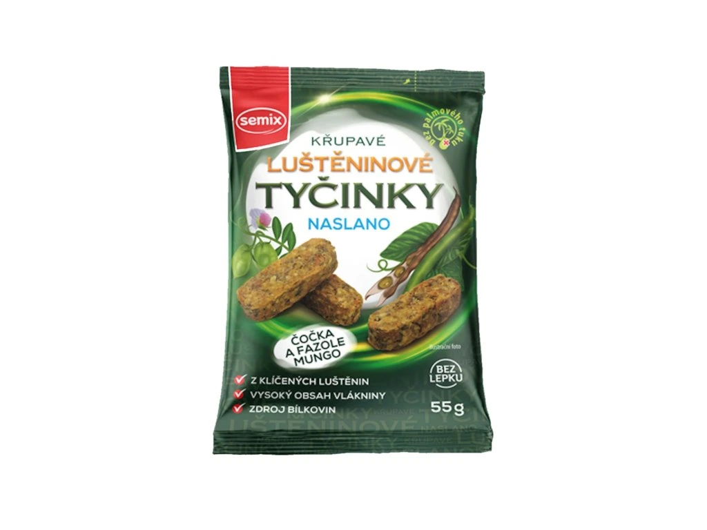 Mini luštěninové tyčinky jsou zapékané bezlepkové tyčinky vyrobené z klíčených čočkových a fazolových lupínků a bezlepkového ovsa, díky tomu jsou lépe stravitelné a dodají energii na delší dobu.