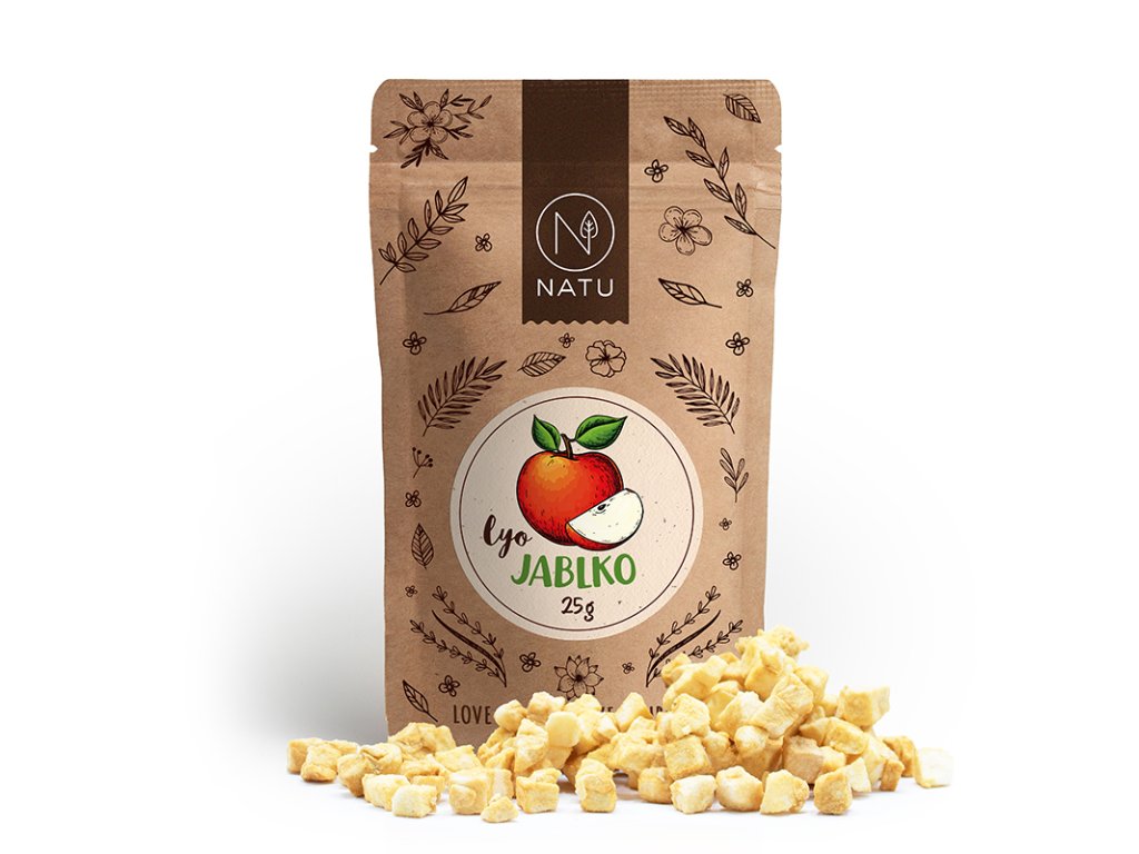Čerstvá jablka jsme zbavili slupky a jádřinců, nakrájeli na drobné kostičky a šetrně usušili metodou lyofilizace. Díky tomu si ovoce zachovává své nutriční vlastnosti jako jsou živiny, vitamíny a minerály. Lyo jablka se pyšní vysokým obsahem vlákniny a skvěle se hodí do kaší, granol nebo jen tak na zobání. Už nemusíte zdlouhavě sušit jablka v sušičce nebo na novinách u topení. Vychutnejte si křupavé jablečné kousky kdykoliv budete mít na ně chuť._x005F