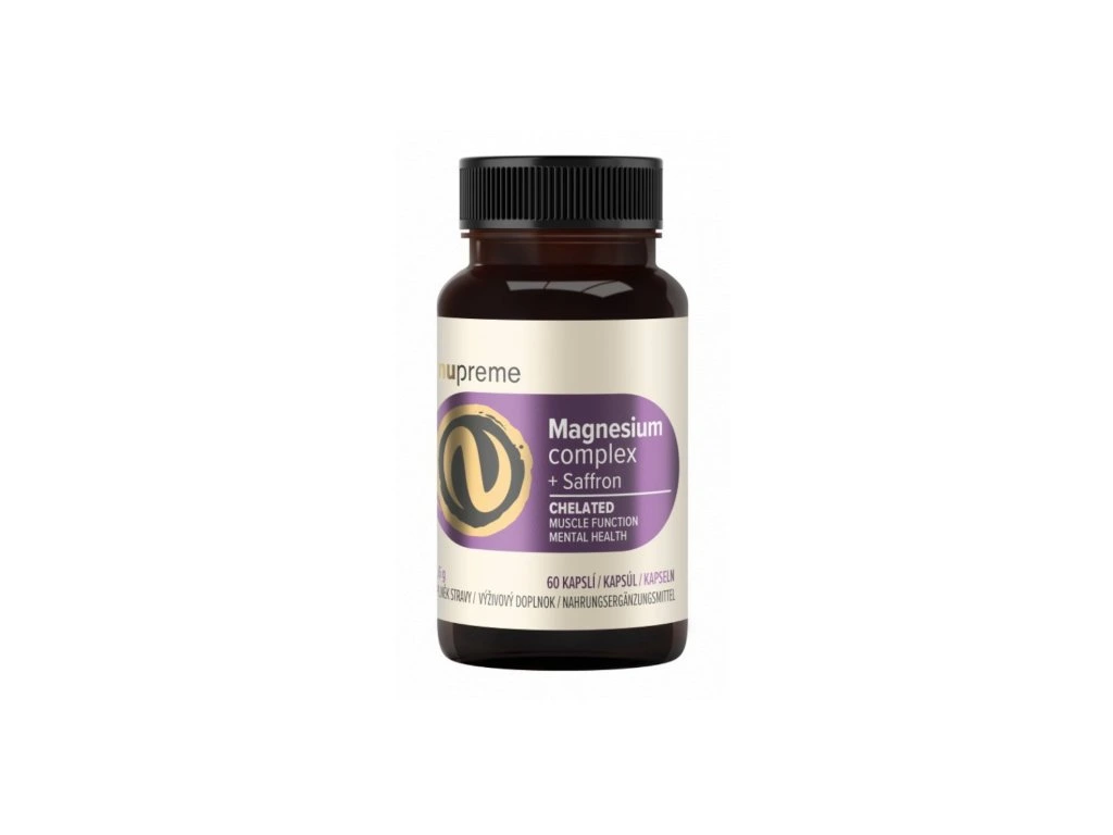 Hořčík, vegan kapsle HPMC, šafrán extrakt, vit. B6.