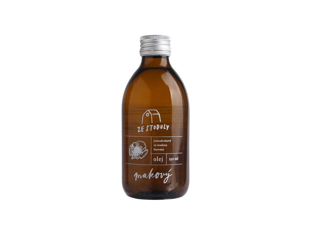 - Panenský makový olej je vyroben ze semínek modrého máku českého původu. - Je získáván mechanicky lisováním za studena. Dále není upravován. - Neobsahuje žádné omamné látky. - Neobsahuje cholesterol. - Oblíbený je zejména pro své vynikající chuťové vlastnosti a jemnou vůni. Využití: Makový olej je určen pouze do studené kuchyně. Díky své jemné chuti se hodí do sladkých i slaných pokrmů (zeleninových i ovocných salátů, pomazánek, ovocných omáček nebo na palačinky či kaši). K teplým pokrmům se dá přidat až po tepelné úpravě. Může být konzumován jako doplněk stravy při užívání jedné čajové lžičky 2x denně. Velkou oblastí použití jsou kosmetické účely. Používá se ke zjemnění pleti či zklidnění pokožky např. po opalování. Také se používá v péči o vlasy a nehty. Skladování: Kvalitu panenských rostlinných olejů ovlivňuje správný způsob skladování. Skladujte v chladnu a temnu max. 9 měsíců. Po otevření schovejte do lednice a spotřebujte do 3 měsíců. Případný kal na dně není na závadu.