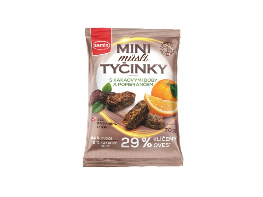 Mini müsli tyčinky jsou výborné jako svačina, ideální do práce, do auta, ke sportu, do školy, na výlet.