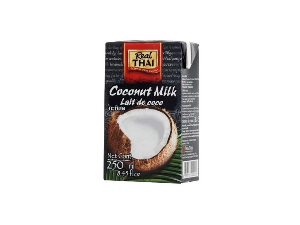 Naše nabídka kokosového mléka Real Thai obsahuje kokosové mléko 400ml , kokosové mléko 250ml , kokosové mléko Lite 400ml , kokosové mléko Lite 250ml a kokosový krém.