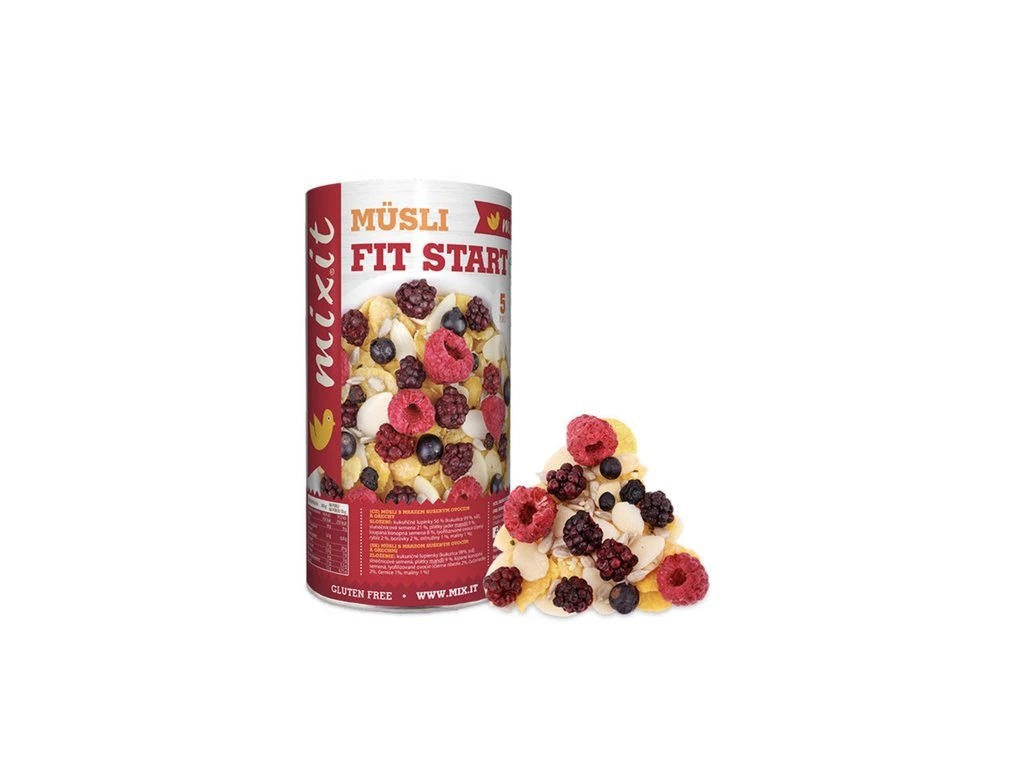 Müsli Fit Start – Zažívání a metabolismus kombinuje křupavé kukuřičné lupínky, zdravá semínka a plátky mandlí s výběrem mrazem sušeného bobulovitého ovoce (rybíz, borůvky, ostružiny, maliny). Produkt je navržen tak, aby chutnal, ale zároveň podpořil správné zažívání a metabolismus jako součást pestré, zdravé a vyvážené snídaně či svačiny.