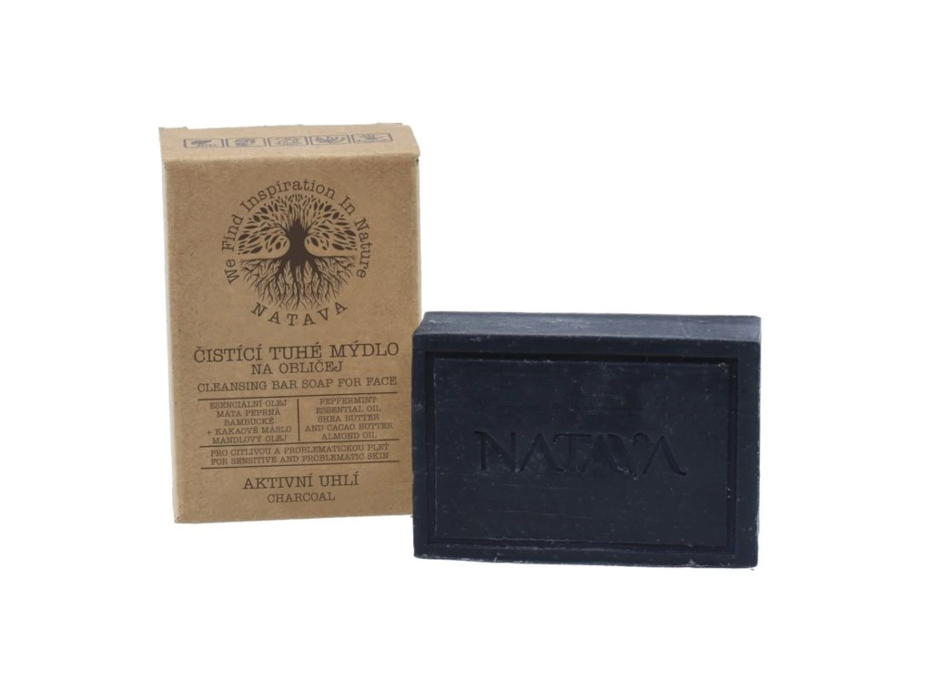 Toto tuhé čistící mýdlo na obličej balené v papírovém obalu je určeno pro citlivou a problematickou pleť. Díky unikátnímu složení, v němž nechybí aktivní uhlí čí výtažek z máty, dokonale očišťuje pleť od nečistot a snadno odstraňuje make-up. Navíc pomáhá efektivně pleť zbavovat nadbytečné mastnoty a zabraňovat tak nežádoucímu ucpávání pórů. Čistící tuhé mýdlo na obličej zabalené s maximálním ohledem na přírodu a životní prostředí v recyklovatelném papírovém obalu, který vás potěší praktičností i během cestování, obsahuje bohaté přírodní složky. V jeho základu najdete kokosový a olivový olej, kakaové a bambucké máslo, které společně pečují o správnou hydrataci a výživu pokožky. Díky obsahu aktivního uhlí absorbuje přebytečnou mastnostu a minimalizuje ucpávání pórů. Jedinečné složení zajistí, že po umytí je pokožka hydratovaná a jemná a netrápí ji nepříjemné pnutí, jak tomu u čistících mýdel mnohdy bývá. Užijte si tu nejlepší přírodní péči i pocit z toho, že po spotřebování mýdla nezatížíte životní prostředí plastovou lahví! Použití: Mýdlo napěňte s dostatečným množstvím vody v dlaních. Naneste na obličej, krouživými pohyby vyčistěte pleť a opláchněte čistou vodou. Po aplikaci mýdlo opláchněte od zbytků pěny a uložte na bezpečné místo. Ideálně na kovový rošt či elegantní mýdlenku. Mýdlu můžete opatřit i praktický kovový obal, který se hodí zejména během cestování.