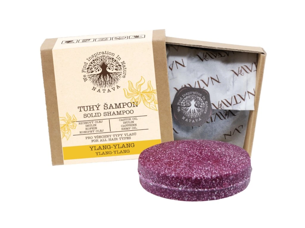 Tento přírodní tuhý šampon v praktickém ekologickém balení je univerzální a dokonale se postará o jakýkoli typ vlasů. Originální receptura v sobě ukrývá ricinový a konopný olej, kakaové a bambucké máslo a inulin, který pomáhá vlasy vyhlazovat a udržovat je hydratované. Obsažené biologicky odbouratelné jemné tenzidy z kokosového oleje je naopak zbaví nečistot a nepříjemné mastnoty. Přírodní tuhý šampon zabalený s maximálním ohledem na přírodu a životní prostředí v recyklovatelném papírovém obalu, který vás potěší svou praktičností i během cestování, obsahuje bohaté přírodní složky. Seznamte se s nimi do detailů! Šampony vyživí vaši vlasovou pokožku a postarají se o komplexní hydrataci vašich vlasů. Tuhý šampon obsahuje široké spektrum aktivních složek a kakaové a bambucké máslo vázající vodu. Díky tomu budou vlasy intenzivně vyživené. Pravidelnou péčí budou bohatě zregenerované, přirozeně lesklé, krásné, elegantně uhlazené. A také chráněné nejen před slunečním zářením, ale dokonce i během fénování, žehlení nebo kulmování. Pokud chcete účinky šamponu ještě více podpořit, pak naneste na vlasy voňavý balzám ideálně stejného typu. Tuhé šampony NATAVA Vám poskytují to nejlepší, co nabízí sama příroda. Vy se jí za to odměňujete tím, že jejich používáním neprodukujete žádné jednorázové plasty. Použití: Vybraný tuhý šampon stačí promnout v navlhčených rukou a nanést na mokré vlasy anebo rovnou vmasírovat do pokožky hlavy, jemně zakroužit ve vlasech, dostatečně zpěnit a pak už jenom opláchnout vodou optimální teploty. Po aplikaci šampon opláchněte od zbytků pěny a uložte na bezpečné místo. Ideálně na kovový rošt či elegantní mýdlenku. Šamponu můžete opatřit i praktický kovový obal, který se hodí zejména během cestování.