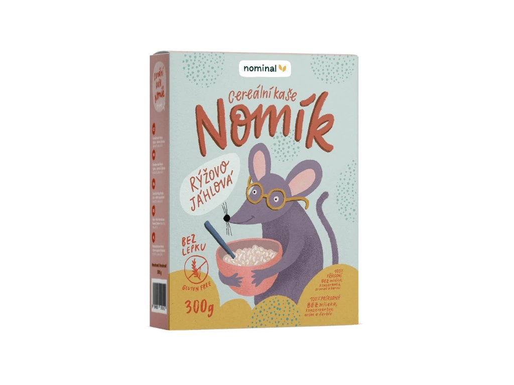 Bezlepkové cereální kaše Nomík je vyrobena ze dvou přirozeně bezlepkových surovin, jáhel a rýže. Protože k její výrobě je použita rýže loupaná (bílá), má nížší obsah vlákniny a je velmi šetrným zdrojem energie ve formě komplexních sacharidů. Díky těmto vlastnostem je vhodná i pro ty, kteří ze zdravotních důvodů musí množství vlákniny ve stravě omezit. Kaše má jemnou konzistenci, příjemnou chuť a lehkou stravitelnost.