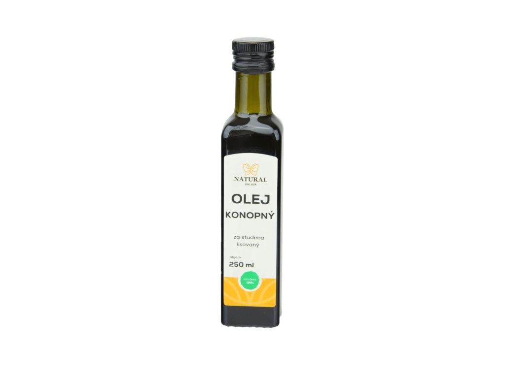 Jedlý rostlinný olej jednodruhový. Lisovaný za studena. Případný zákal není na závadu. Panenský konopný olej je získáván ze semen konopí, které neobsahují THC. Konopný olej obsahuje unikátní skladbu omega-3 a omega-6 esenciálních nenasycených mastných kyselin, vysoké množství rostlinných sterolů, minerály a vitamíny. Olej má příjemnou, charakteristickou oříškovou chuť i vůni.