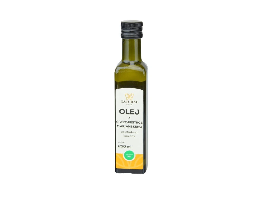 100% olej z ostropestřce mariánského je bohatý na polynenasycené mastné kyseliny: stearovou, linolovou, palmitovou. Olej se získává lisováním za studena a nepodléhá procesu rafinace, díky tomu si zachovává všechny zdraví podporující vlastnosti. Může být použit jako doplněk k salátům, pastám, majonézám, kroupám, polévkám a omáčkám.