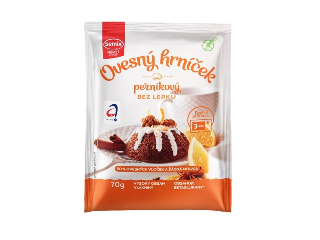 Sypká směs se smíchá se studenou vodou, nechá odstát a poté se upeče v mikrovlnné troubě. Zdravý dortík je hotov během cca 6 minut. Nejlépe chutná ještě teplý, ale lez si ho připravit i dopředu na výlet, do školy nebo do práce. Ovesný hrníček má vysoký obsah vlákniny, obsahuje betaglukany, které snižují hladinu cholesterolu v krvi. Je bezlepkový a bez palmového tuku. Návod k použití: Obsah sáčku vsypte do většího hrníčku (250 ml), zalijte asi 90 - 100 ml studené vody nebo mléka (9 polévkových lžic) a dobře promíchejte. Nechte 3 - 5 minut odstát, poté vložte do mikrovlnné trouby a nastavte příkon 700W a dobu 3 - 4 minuty, podle typu mikrovlnné trouby. Po ukončení pečícího programu můžete ihned konzumovat nebo po ukončení pečení můžete hrníček také otočit dnem vzhůru na talířek a vyklopit. Nakonec lze dochutit oblíbeným sirupem nebo medem, ovocem, zakysanou smetanou, oříšky, aj.