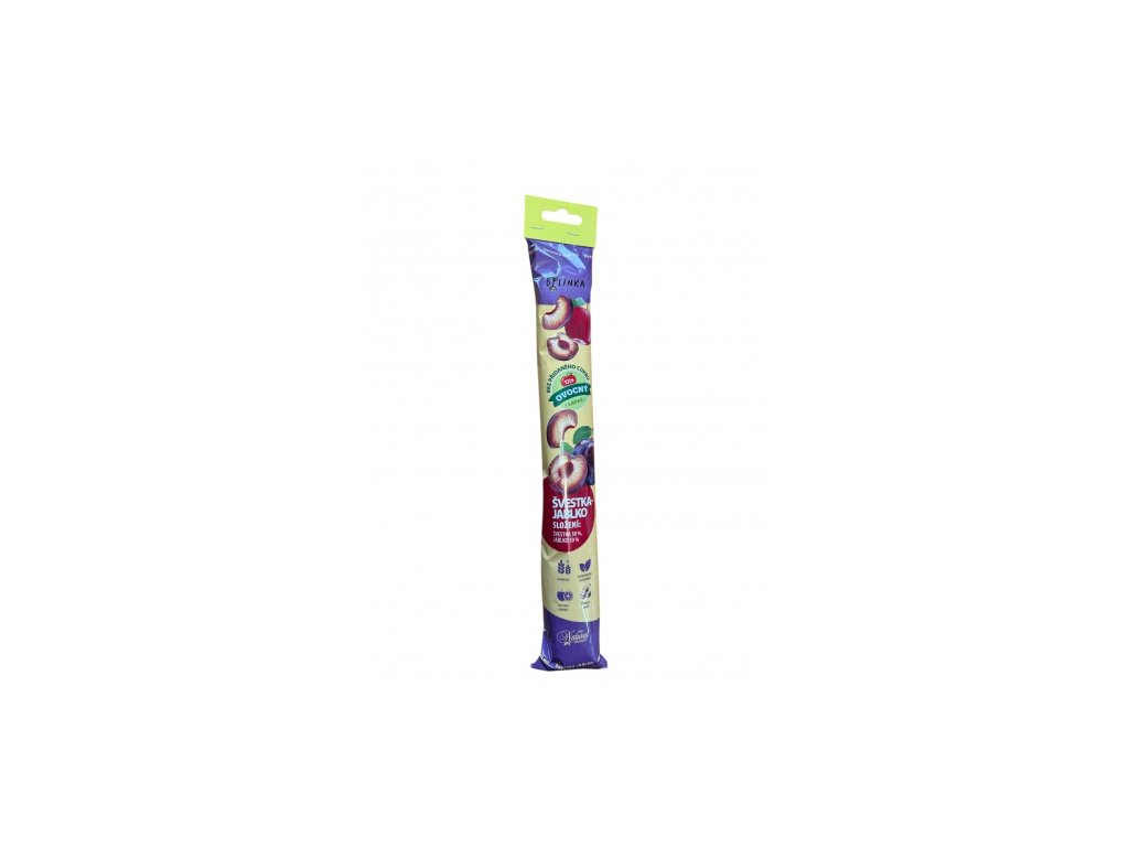 Složení: 50% švestka, 50% jablko Energetická hodnota na 100 g: 851 kJ/201 kcal Výživová hodnota na 100 g: Tuky 1,4 g (z toho nasycené mastné kyselin 0,2 g), Sacharidy 45,5 g (Cukry 40,8 g), Bílkoviny 1,5 g, Sůl 0,01 g, Vláknina 4 g Země původu: Ukrajina Výhradní dovozce a distributor pro ČR: TML a.s., Zábrdovická 25/2, 615 00 Brno info@tml.cz Minimální trvanlivost do/Šarže: na obalu Balení: 140 g