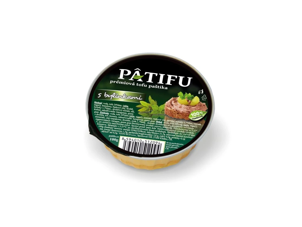 Paštika s bylinkami od české společnosti Veto Eco je rostlinná paštika s jedinečnou chutí více než deseti čerstvých bylinek v kombinaci s prémiovou tofu paštikou. Tato paštika v praktickém balení je vhodná k využití pro rychlou svačinku nejen doma, ale také v práci, na výletech nebo při cestování. Tofu je sójový sýr, který se vyrábí srážením sójového mléka a obsahuje velké množství bílkovin, vápník, hořčík, vitamin A a kyselinu listovou. Dále je zdrojem esenciálních aminokyselin a může obsahovat i další minerály jako je železo, mangan, měď, selen, zinek a fosfor.