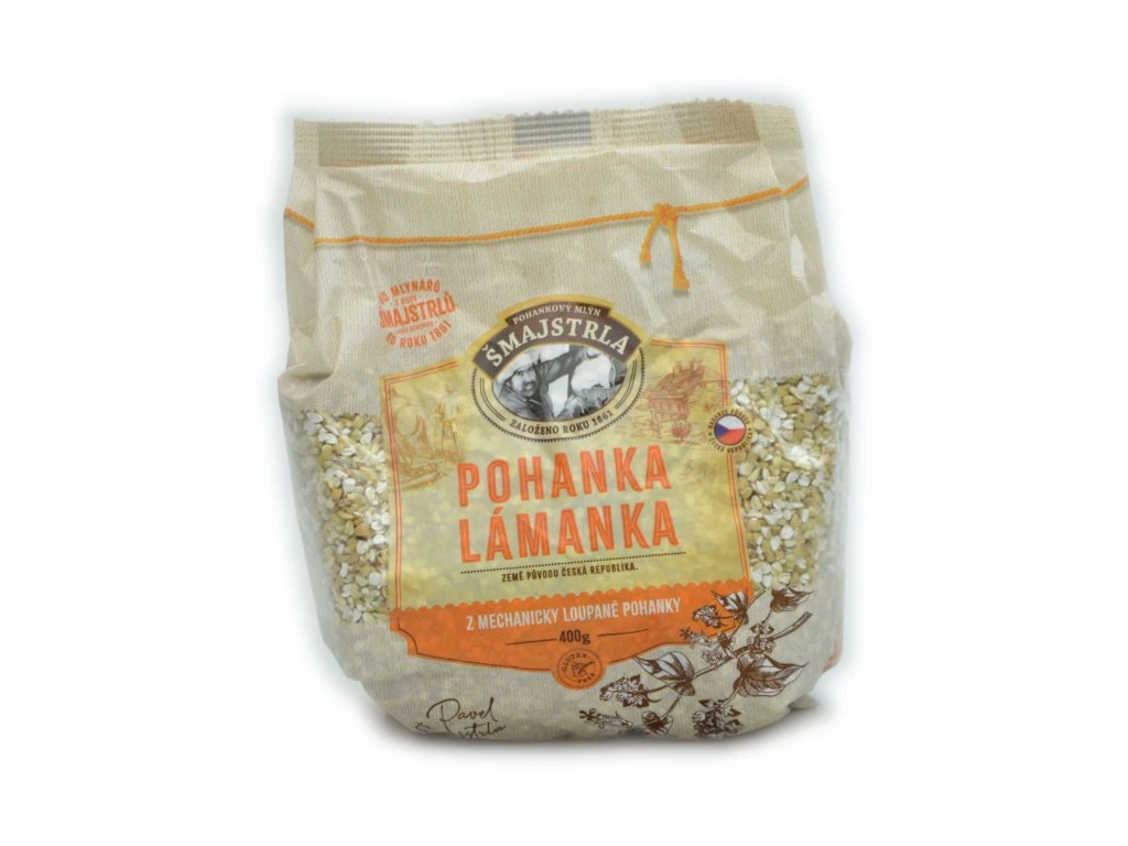 Pohanka lámanka od společnosti Pohankový mlýn Šmajstrla je mechanicky loupaná česká pohanka, ve které jsou zachovány veškeré vitamíny a minerály. Pohanka lámanka je oloupaná pohanka dále přemletá na menší velikost, aby se do zrníčka dostala lépe voda a tím rychleji měkla.