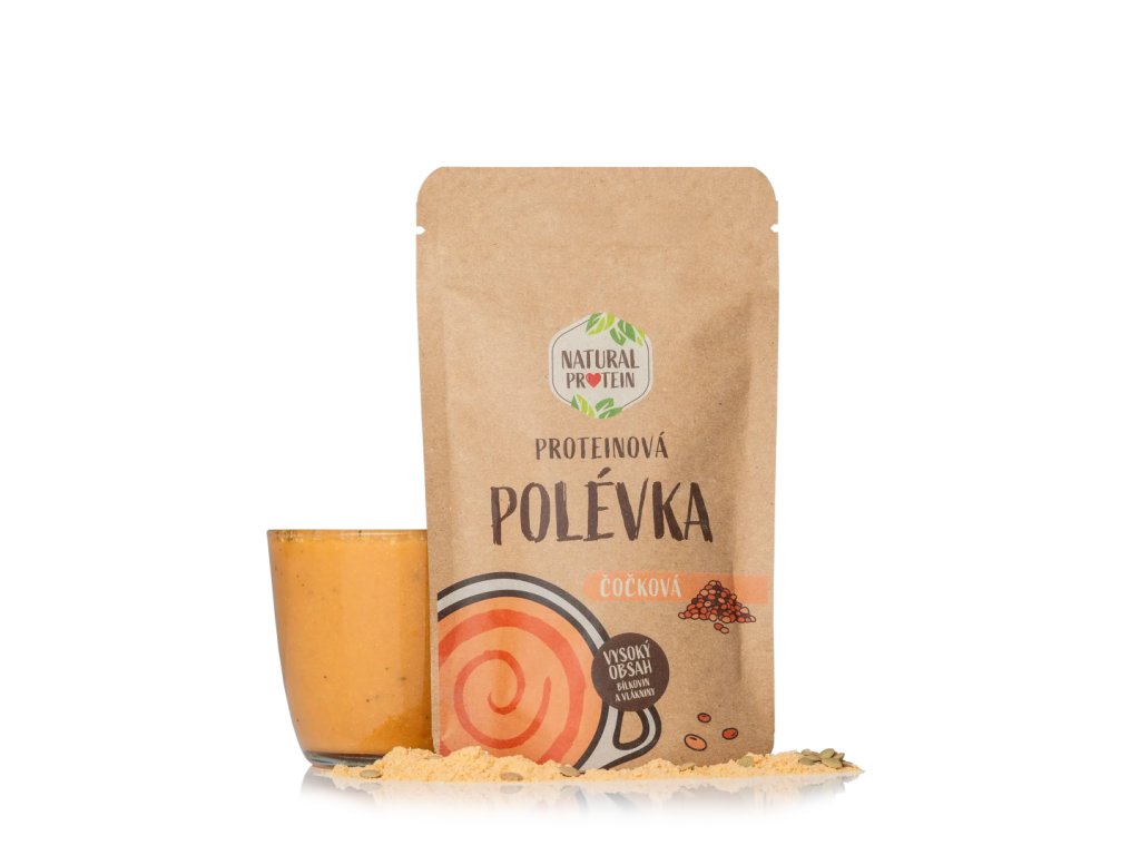 Dejte hladu čočku! Poctivou polévkou z BIO červené čočky, s hrstkou mrkve, celeru, česneku a cibule, špetkou koření a slušnou náloží hrachové bílkoviny. Je lehce stravitelná, bez umělých přísad a lepku. Stačí zalít horkou vodou a na stole máte skvělé jídlo bohaté na proteiny. Hotová za pár minut, zasytí, zahřeje, zachutná, prostě mňam!
