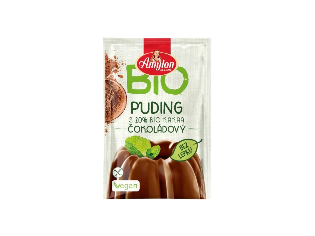 Bezlepkový čokoládový puding v bio kvalitě je lahodný puding s výraznou čokoládovou příchutí, který je připraven pouze z BIO surovin. Bohatá a intenzivní čokoládová chuť vychází z velmi kvalitního BIO kakaa. Veškeré přísady jsou ryze přírodního původu, puding je bez přidaného cukru a sladidel. Pokud není při přípravě pudingu použit cukr, je vhodný také pro diabetiky. Zaměníme-li mléko za rostlinný nápoj (ovesný, kokosový nebo mandlový), získáme bezlaktózovou verzi pudingu.