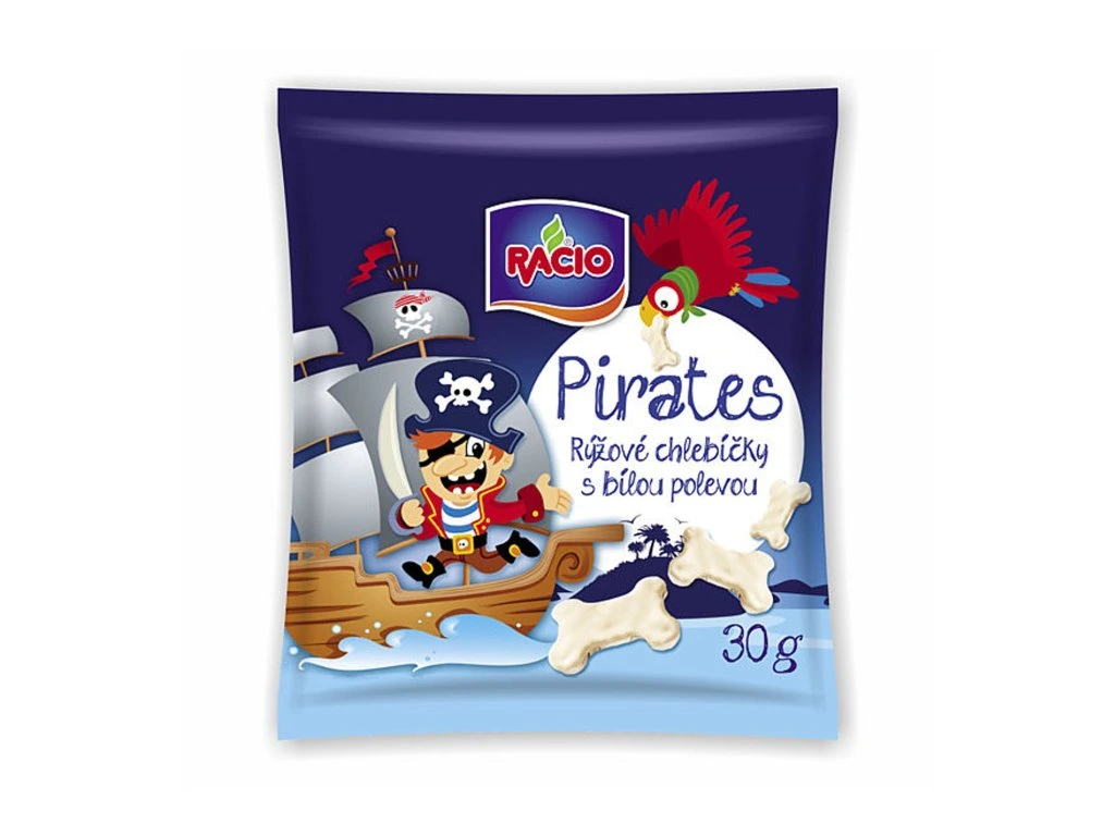 Pirates rýžové chlebíčky s bílou polevou s jogurtovou chutí, pufovaný výrobek