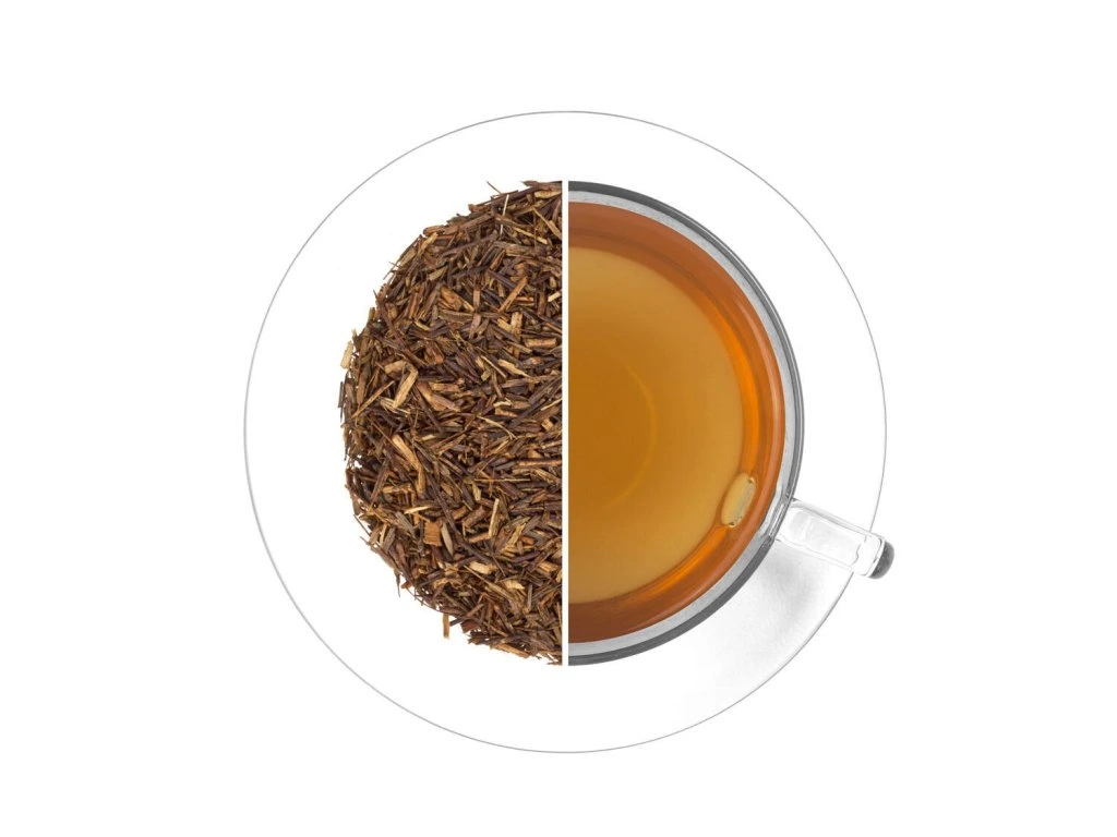 Rooibos je jihoafrický keř (Aspalathus linearis) s tenkými větvičkami a drobnými, jehličkovitými lístky o délce přibližně 1 cm. Roste výhradně na plantážích v oblasti Kapska v Jihoafrické Republice. Stejně jako zelený rooibos má jehličkovité lístky, ale na rozdíl od něj prochází fermentací. Právě tento krok dodává čaji jeho typickou červenohnědou barvu, příjemně nasládlou chuť a jemné medové tóny. Skvěle chutná jak horký, tak vychlazený. Neobsahuje kofein a je vhodný k popíjení po celý den. Dle současné legislativy EU nemůžeme uvádět zdravotní účinky bylin.
