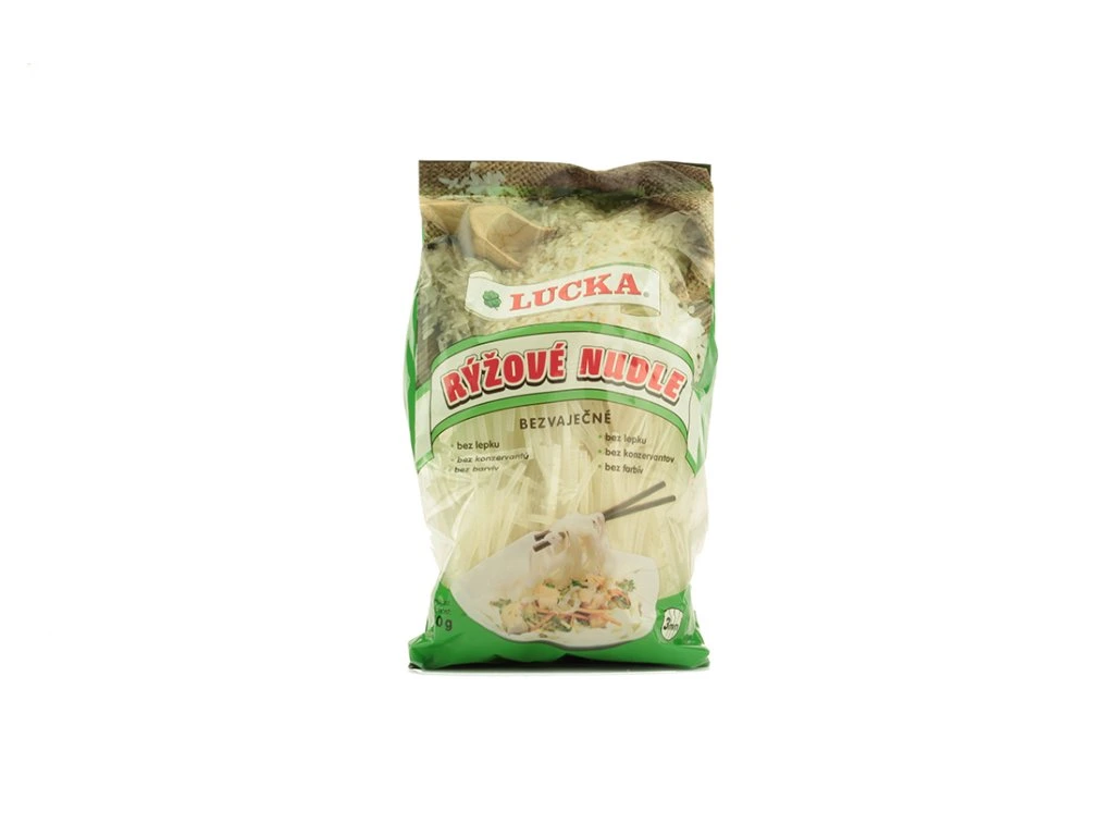 Naše nabídka bezlepkových rýžových těstovin od společnosti Hoka Trade řady Lucka obsahuje tenké nudle , kolínka , těstoviny penne , polévkové hvězdičky , vřetena , vlasové nudle a široké rýžové nudle.