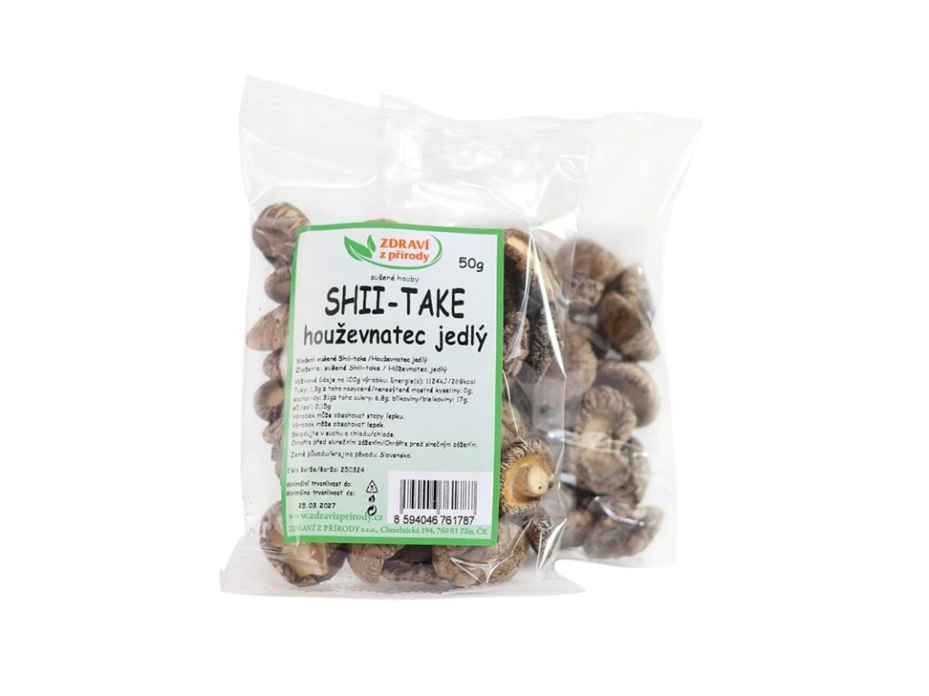 Shiitake nebo-li Houževnatec jedlý je jedlá houba pocházející z východní Asie, která je oblíbená v orientální kuchyni pro svou masitou konzistenci a silné aroma, a která je hojně využívána v tradiční čínské medicíně. Shiitake obsahuje širokou škálu výživných látek, včetně vitamínů B1, B2, B3, B5, B6, B9, D2 a minerálů jako je měď, zinek, selen, mangan. Dále obsahuje aminokyseliny, polysacharidy (lentinan, beta-glukany), mastné kyseliny, terpenoidy, steroly, enzymy a lykopen.