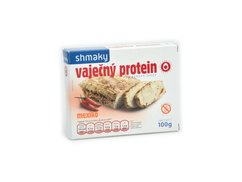 Shmaky mexiko, tepelně opracovaný, vákuově balený VAJEČNÝ výrobek. Výrobek je určený pro přípravu pokrmů teplé a studené kuchyně. Je vhodný pro zdravou a racionální výživu. Může úplně nebo částečně nahradit maso. Neobsahuje cholesterol. Uvolněná kapalina je součástí ochranného prostředí a není na závadu výrobku. Vysoký obsah bílkovin. Méně než 1% tuku.