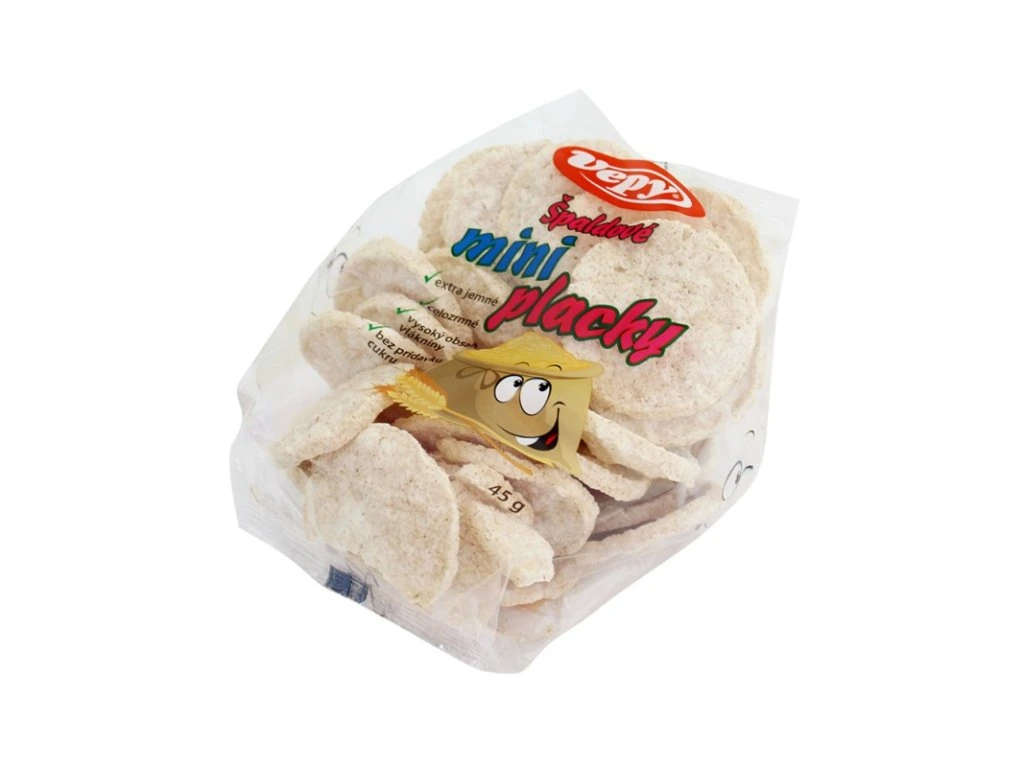 Naše nabídka placek značky Vepy obsahuje placky kukuřičné , špaldové , žitné , kukuřičné mini , bramborové mini a špaldové mini.