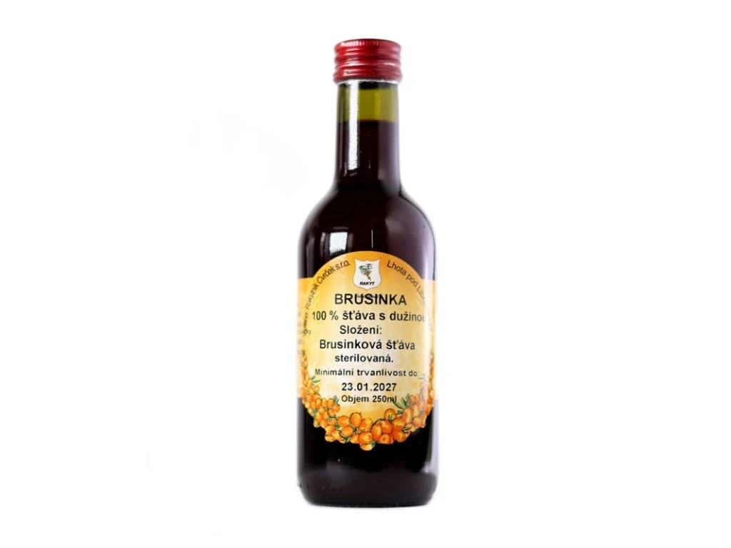 Brusinková šťáva je určená k přímé konzumaci, lze ji použít do čaje nebo vody k pití. Před použitím protřepejte.