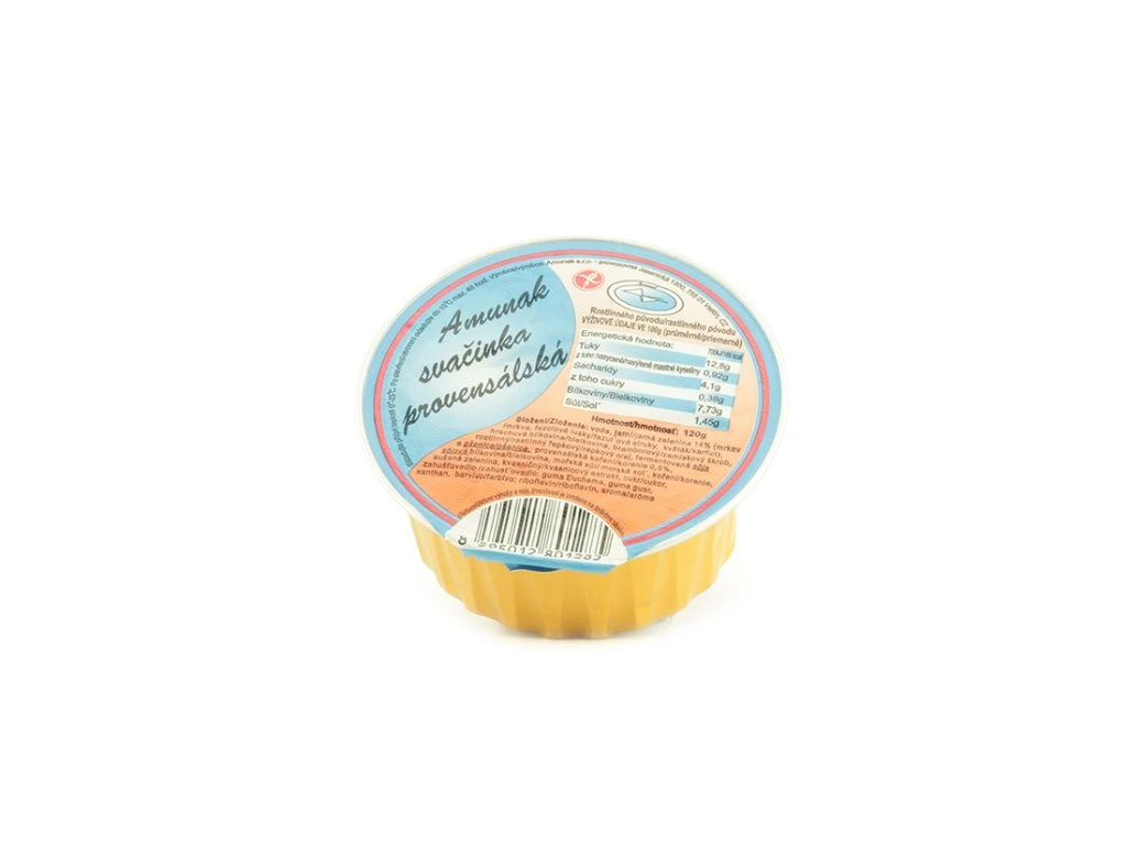 Voda, jarní zelenina 14% (mrkev, fazolové lusky, květák), hrachová bílkovina, brambororvý škrob, rostlinný olej řepkový, fermentovaná SÓJA a PŠENICE, provensálské koření (0,5%), SÓJOVÁ bílkovina, mořská sůl, koření, sušená zelenina, kvasničný extrakt, cukr, zahušťovadlo:guma Euchema, guma guar, xanthan, barvivo:riboflavin, aroma