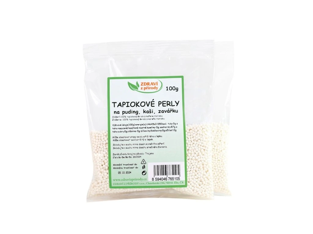Tapiokové perly se vyrábí z bílé dužiny hlíz keře manioka, který roste v Jižní Americe. Jedná se o škrob, který se využívá stejně jako v Česku škrob bramborový nebo kukuřičný. Tapioka je takřka bez alergenů, neobsahuje lepek a je lehce stravitelná. Obsahuje naopak dostatečné množství jednoduchých sacharidů a je kalorická. V menším množství obsahuje tapioka vitamíny řady B, vápník, mangan, železo, hořčík, měď a selen.