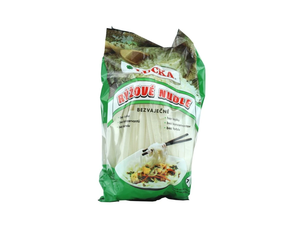 Naše nabídka bezlepkových rýžových těstovin od společnosti Hoka Trade řady Lucka obsahuje tenké nudle , kolínka , těstoviny penne , polévkové hvězdičky , vřetena , vlasové nudle a široké rýžové nudle.