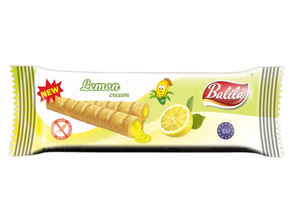 Kukuřičné trubičky plněné krémem s citronovou příchutí (83%) jsou bezlepkové oplatkové trubičky s lahodnou náplní. Trubičky jsou zdravou alternativou klasických trubiček, křupek a jiných tradičních sladkostí. Jsou lehké, plněné jemným krémem s chutnou a oblíbenou příchutí citronu. Trubičky jsou určené k přímé konzumaci, lze s nimi experimentovat v kuchyni při přípravě a dekoraci sladkých jídel, dezertů a pohárů.