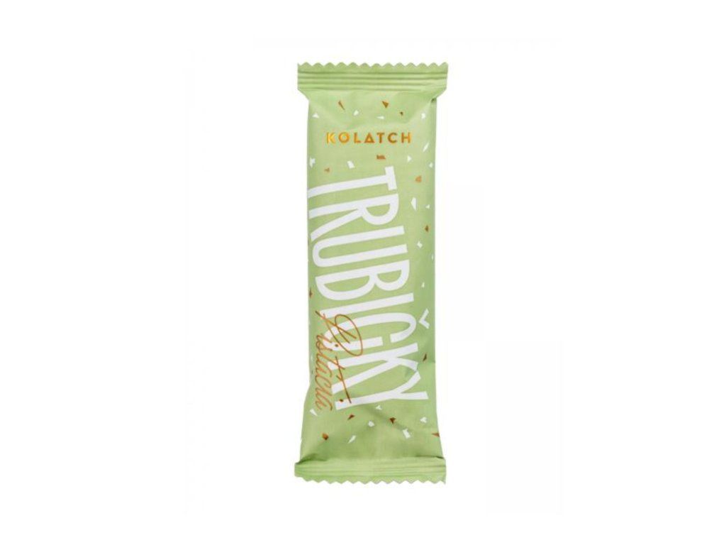 Trubičky plněné pistáciovou náplňí (62%) v bílé čokoláde s pistáciemi Skladujte při teplotě od 15°C do 25°C.