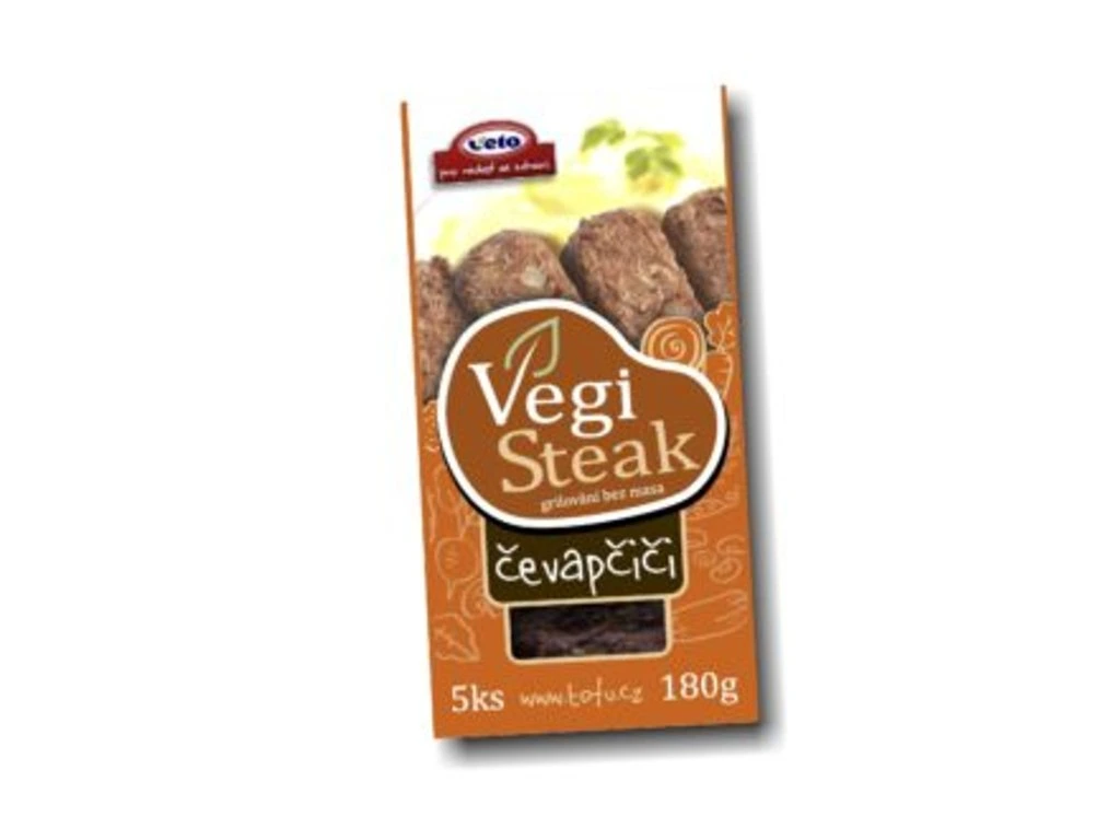 Veganská varianta oblíbeného balkánského jídla. VegiSteak čevapčiči jsou šťavnaté, aromatické a kořeněné karbanátky vyrobené z tofu, sójové bílkoviny, hrachu a řepkového oleje. Jsou předsmažené, takže je možné je slupnout jen po ohřátí. Doporučujeme je připravit na grilu (na eletrice, plynu i na žhavém uhlí) a servírovat s hořčicí, kečupem nebo jinou grilovací omáčkou. Ideální příloha je salát. Při grilování získají VegiSteak čevapčiči křupavou kůrku, příjemně vláčnou konzistenci a šťavnaté jádro.