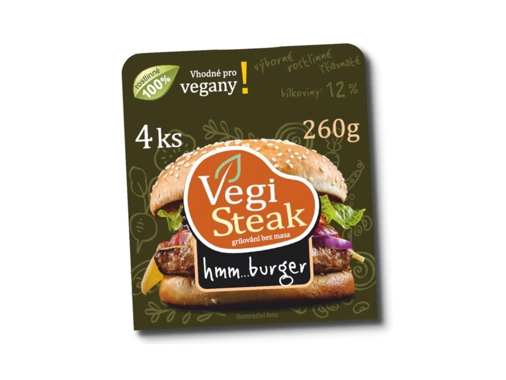 Náš hmm…burger je veganský burger, který se svou skvělou masitou chutí, texturou a šťavnatostí vyrovná světovým značkám. Vítězí velkými tenkými plátky a praktickým balení 2+2. Tak uděláte dvakrát více burgerů nebo si vychutnáte “double”. Nejvíce si rozumí s grilem a burger houskami v mnoha skvělých receptech. Vychutnat si ho ale můžete také v tortillách, wrapech, bagetách nebo toustech.